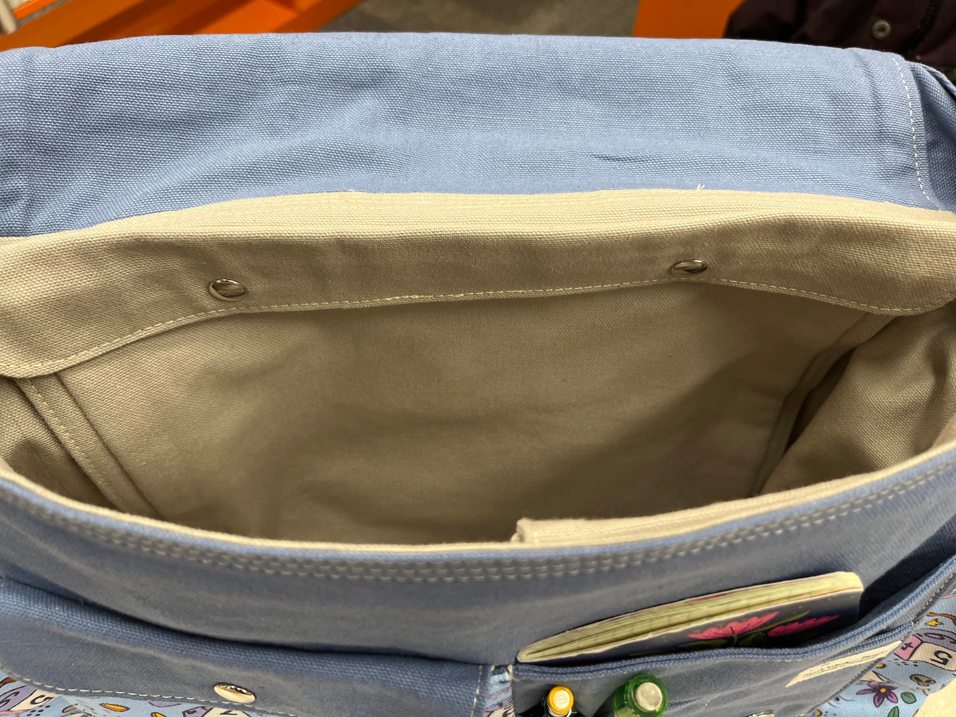 - Grab strap and adjustable shoulder strap of 100% cotton webbing